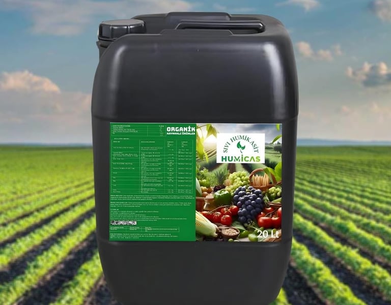 Humic acid is an organic component naturally found in soil. It is formed by the destruction of plants and microorganisms and is absorbed by plant roots, promoting plant growth. Humic acids are known as an organic fertilizer and soil conditioner widely used to improve plant health and increase soil fertility.