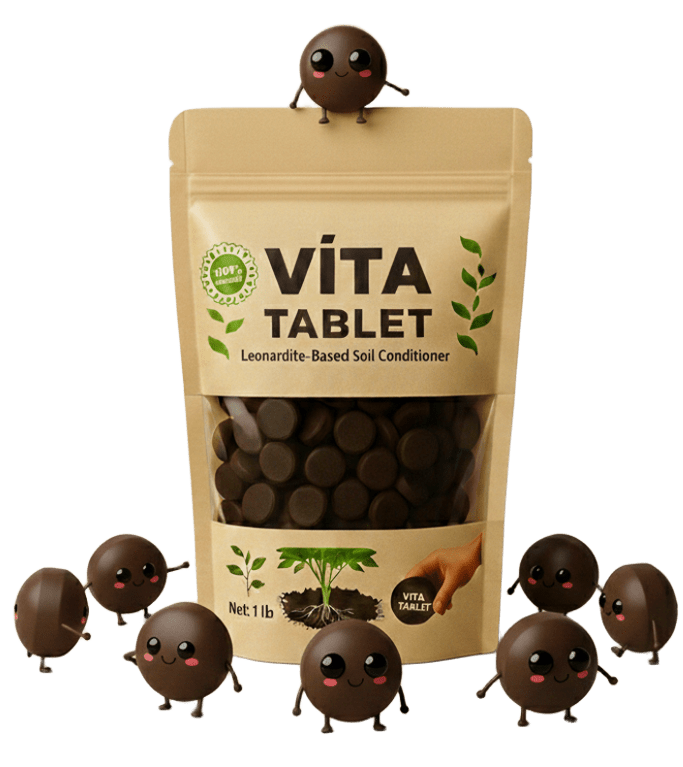 Vita Tablet, a revolutionary 100% natural, leonardite-based solution designed to transform your soil. Unlike loose fertilizers, its convenient tablet form ensures incredibly easy and precise application, preventing waste and simplifying dosage. With a powerful 52% Humic+Fulvic Acid, Vita Tablet gradually releases vital nutrients, consistently enhancing soil structure, supporting microbial activity, and boosting nutrient uptake. This promotes robust root development, increased disease resistance, and ultimately, more vibrant, productive plants for a truly thriving garden. Give your soil life, effortlessly, with Vita Tablet.